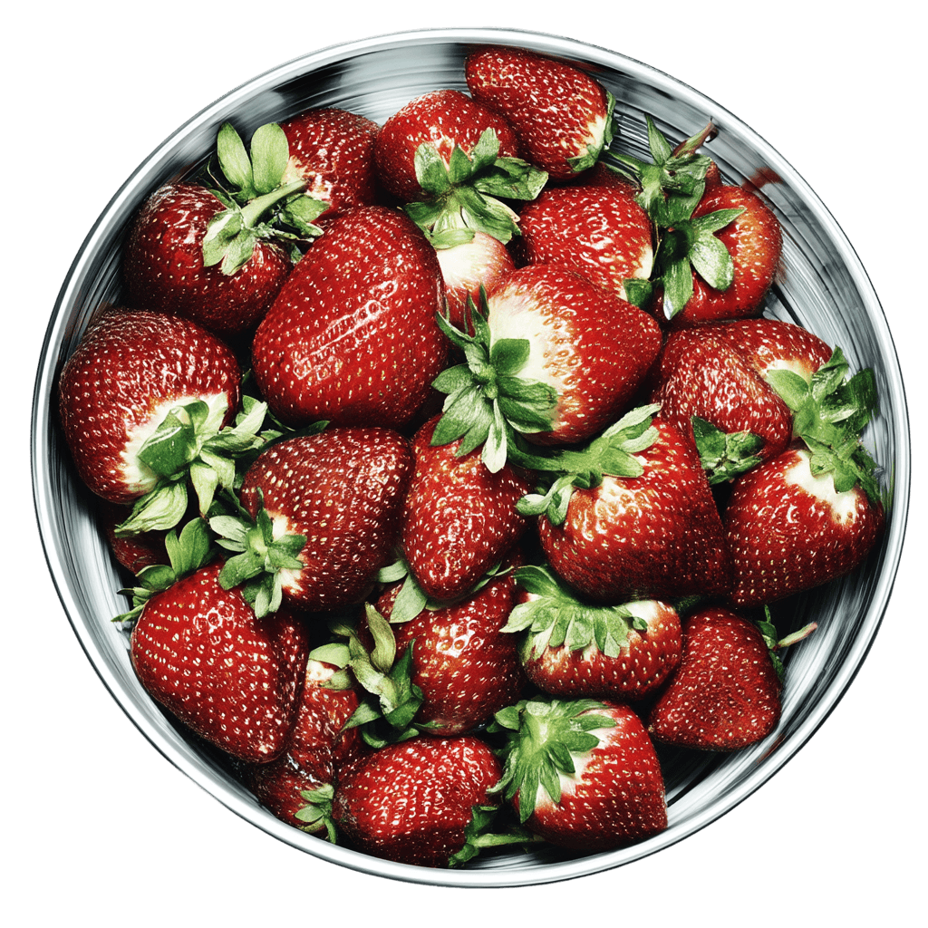 Alimentos de verdade que você já gosta, como arroz, frango, banana ou morango.